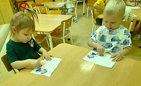 Цель: учить скатывать кусочек пластилина в шарик и слегка сплющивать его.