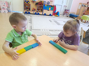 Цель: продолжаем учить простым конструктивным приемам, плотно прикладывать кирпичики друг к другу узкими гранями.